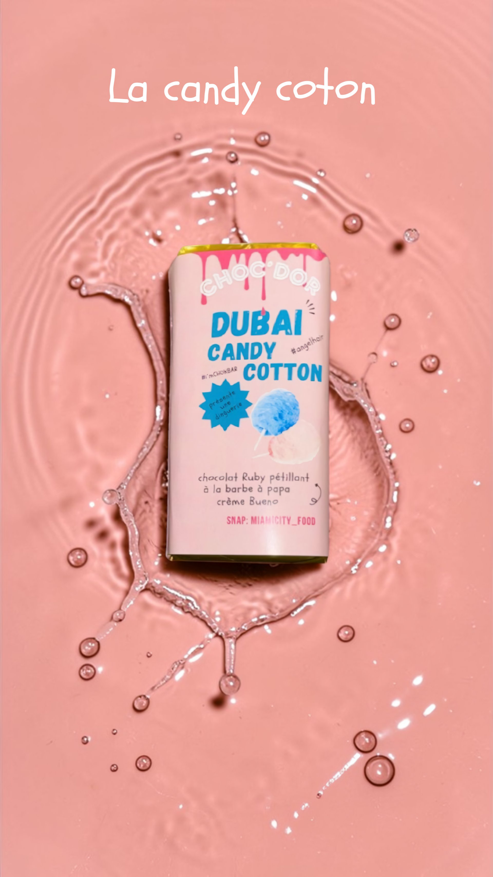 Une tablette de chocolat rose ultra fondante qui cache un coeur de barbe à papa twistée avec plusieurs goût disponible et du kadaif
